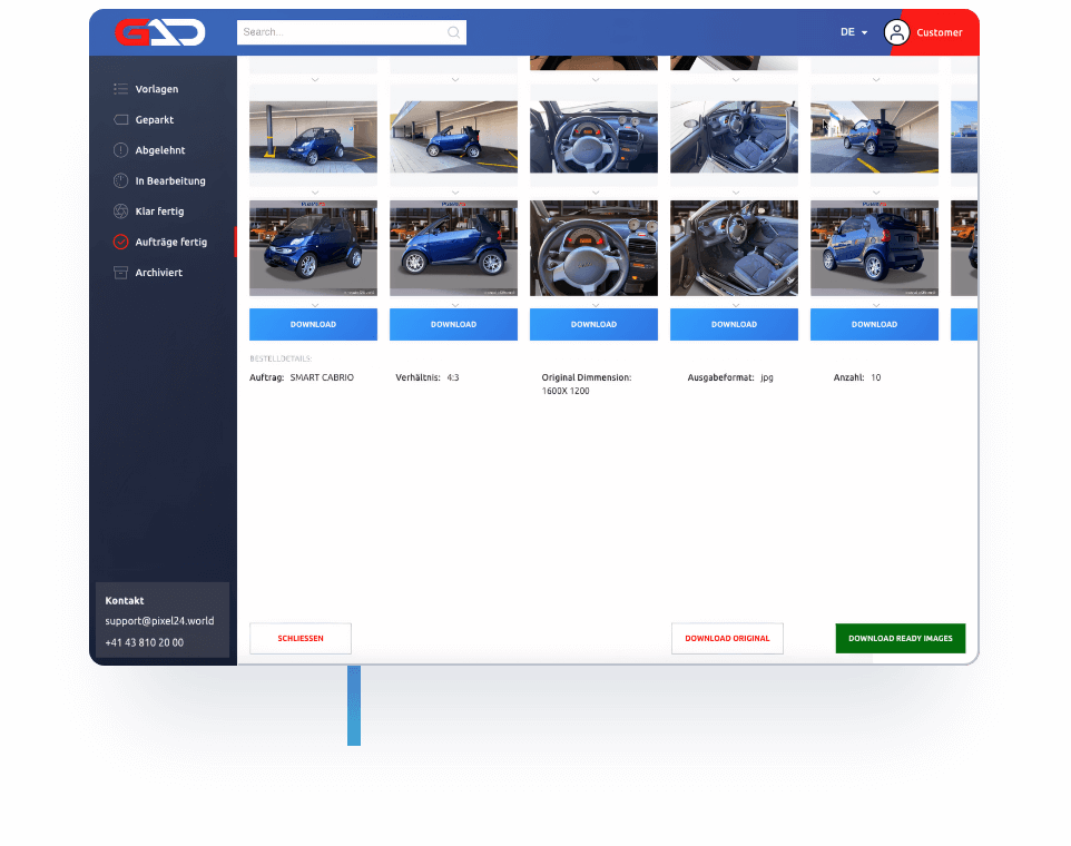 - Sie erhalten die Bilder direkt in Ihr GAD Customer Dashboard wo Sie zum Download bereit stehen.